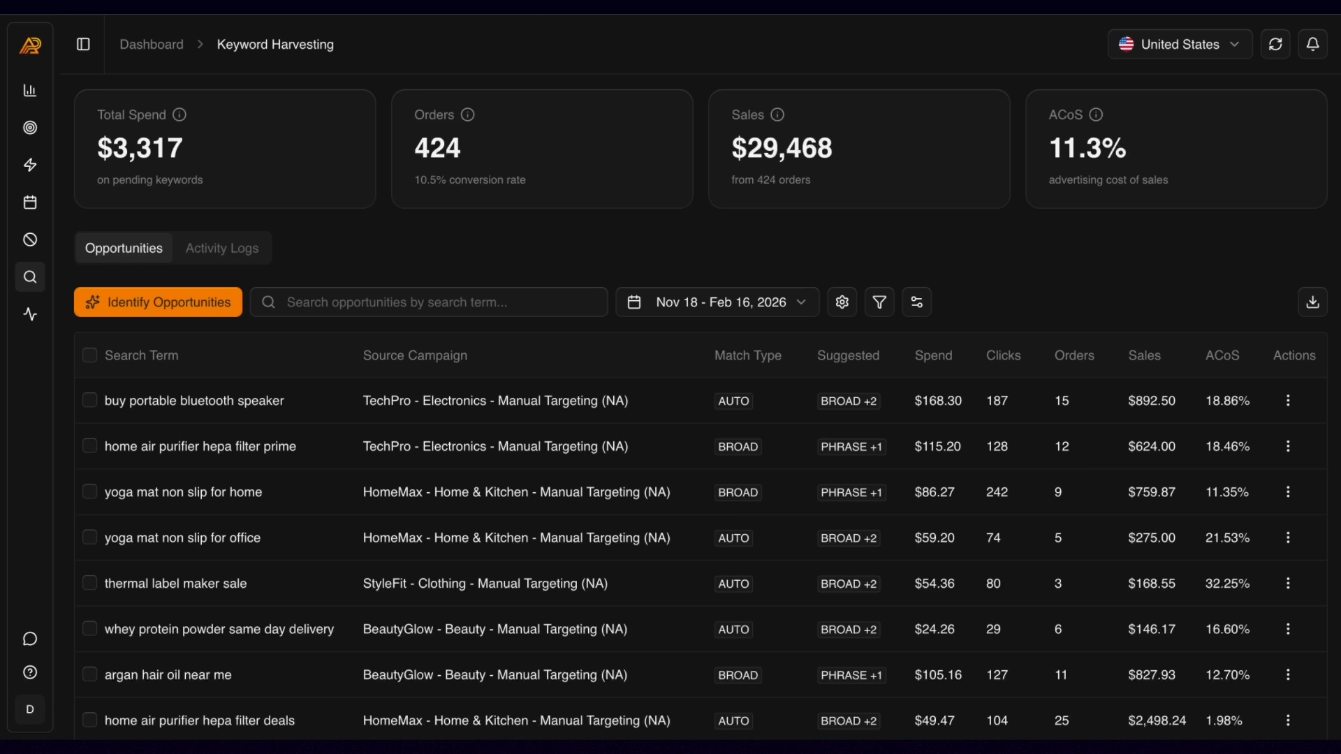 Find hidden gold. We scan your Search Term reports for high-converting queries and upgrade them to targeted Keywords.