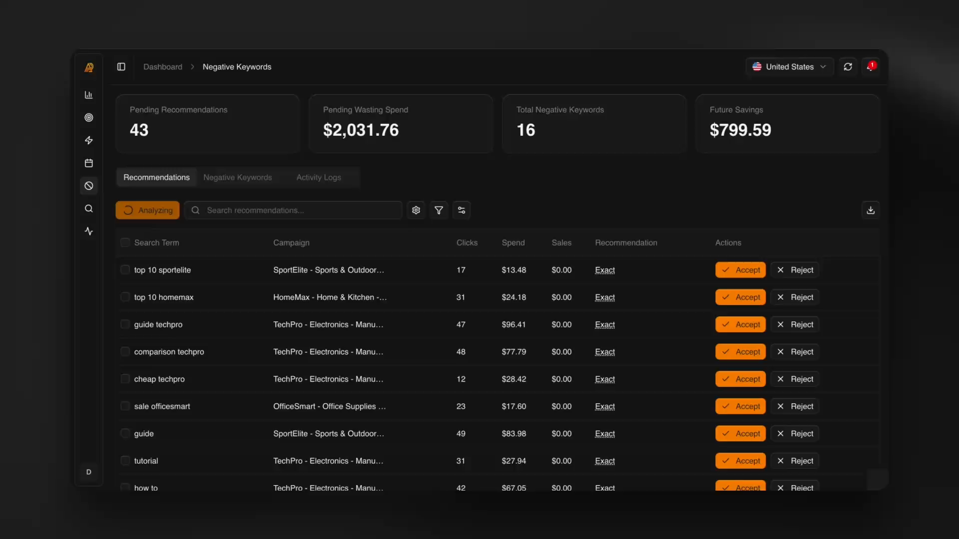 Don't pay for irrelevant clicks. AdPilotPro detects search terms that don't convert and automatically adds them to your Negative Keyword list.